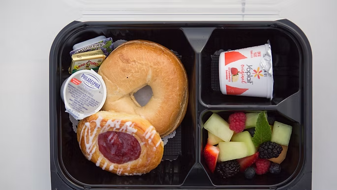Includes seasonal fresh fruit, yogurt, breakfast pastry, butter, and assorted jellies.